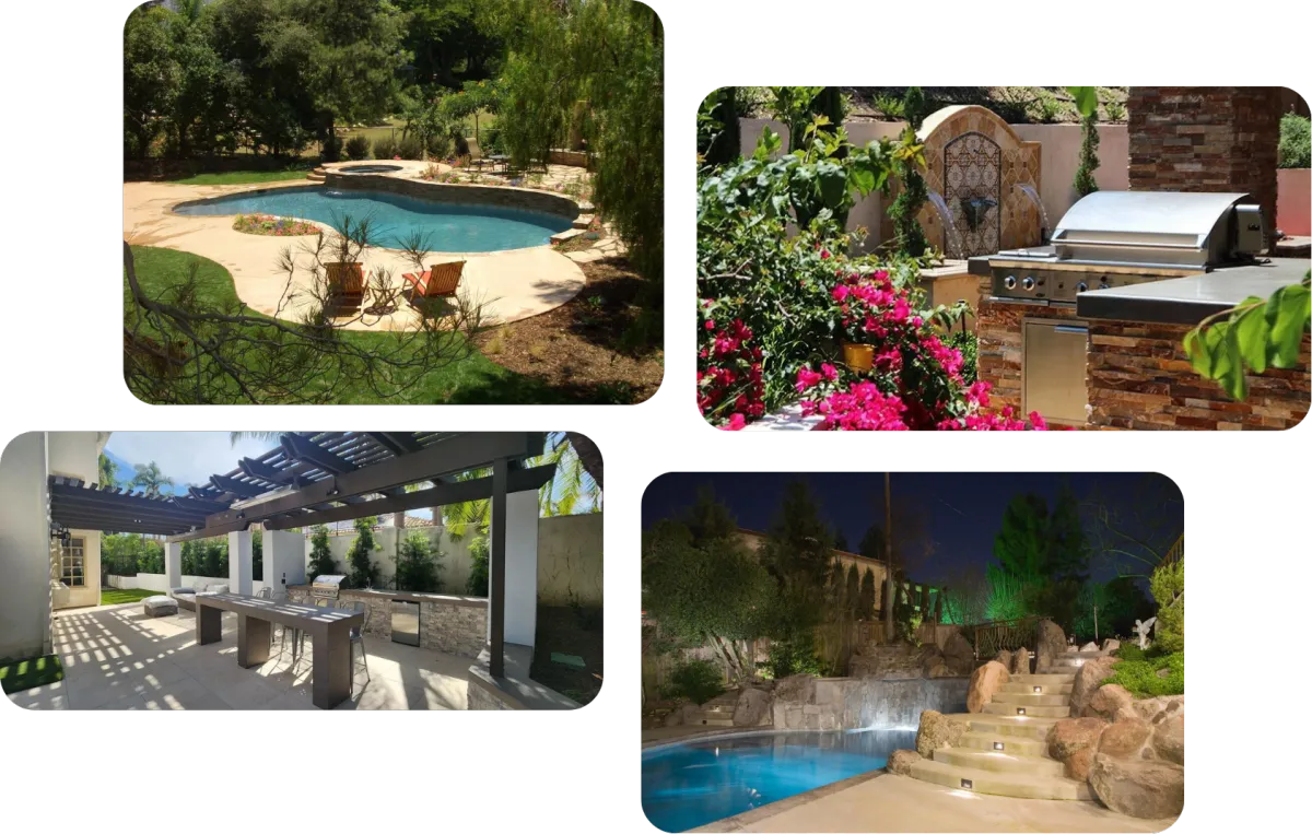 Pool, outdoor kitchen, turf, hardscape, or full backyard transformation.